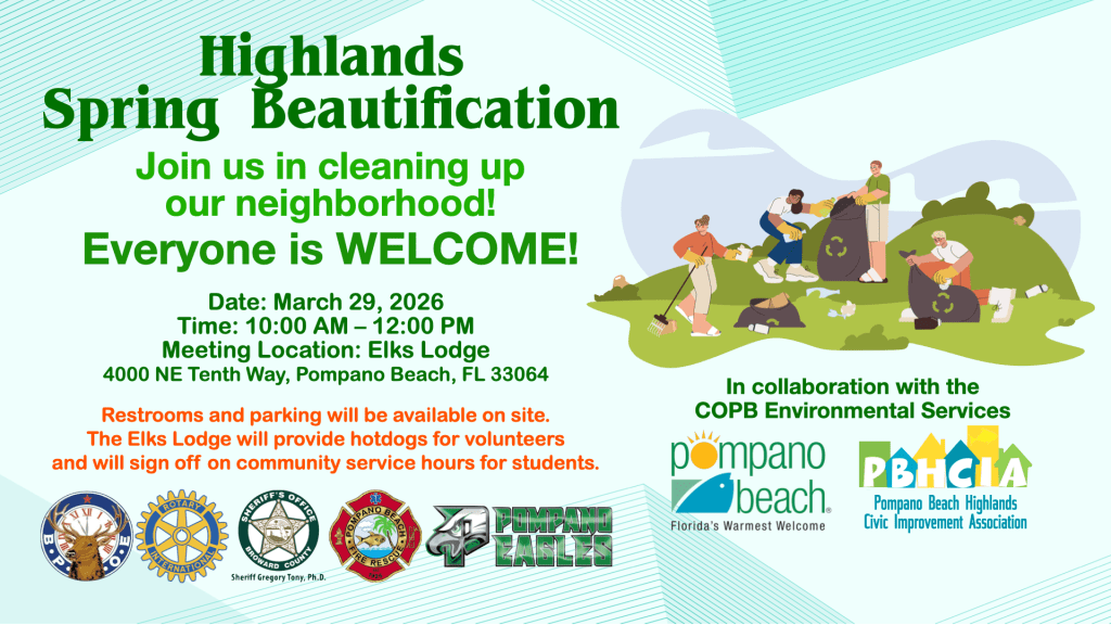 Join us every month to find out the latest information in Pompano Beach Highlands