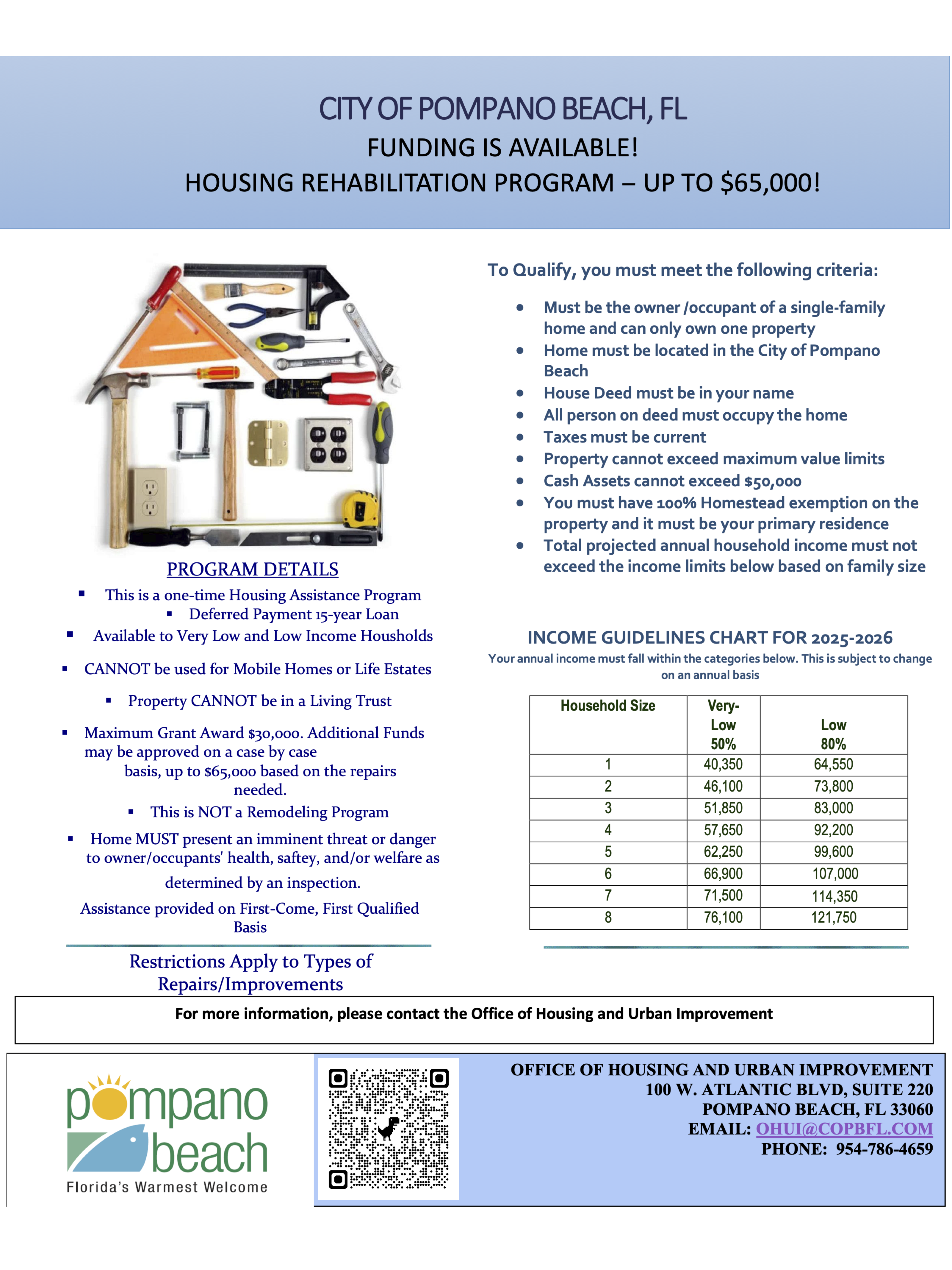 - APPLY TO: 2026 CITY OF POMPANO BEACH, FL FUNDING IS AVAILABLE – HOUSING REHABILITATION PROGRAM – UP TO $65,000!