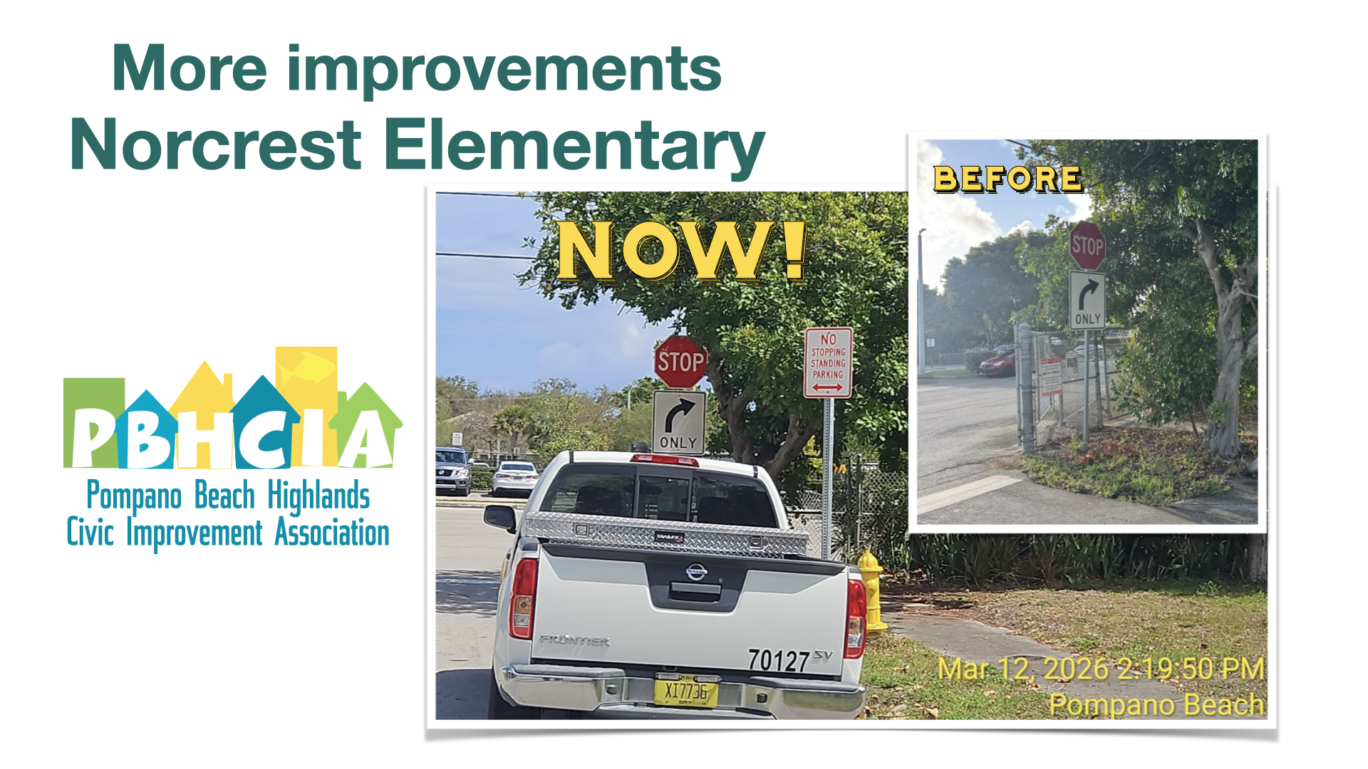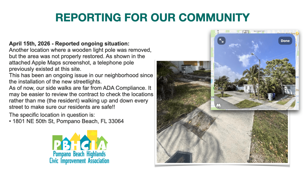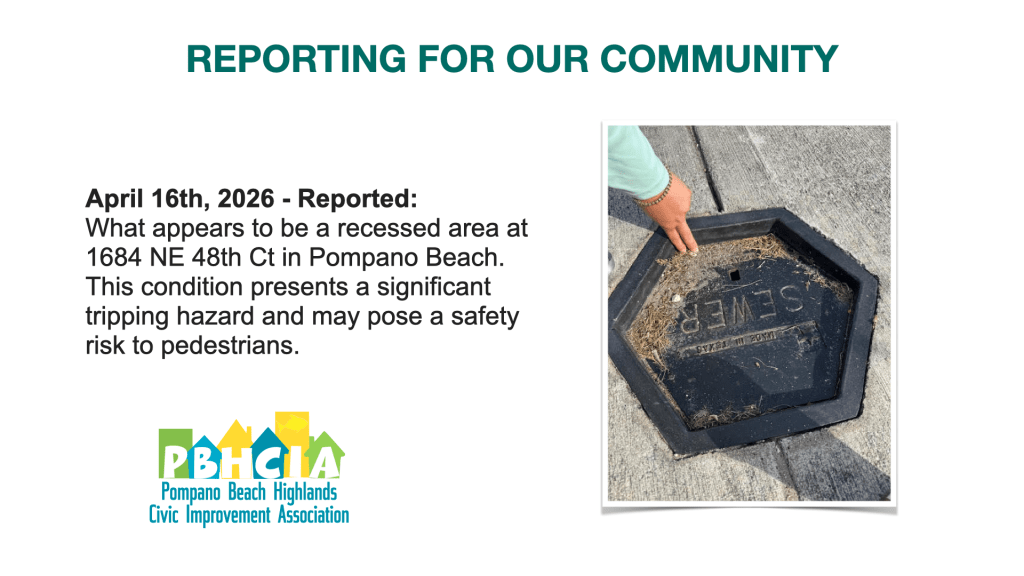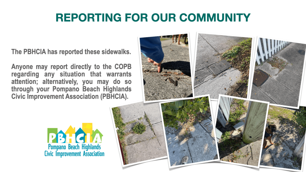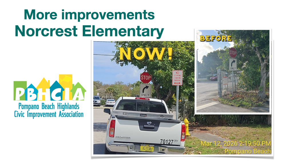 PBHCIA Team is working hard with the City of Pompano Beach to implement improvements, make repairs, and provide effective solutions in our neighborhood. Here are some of them:
